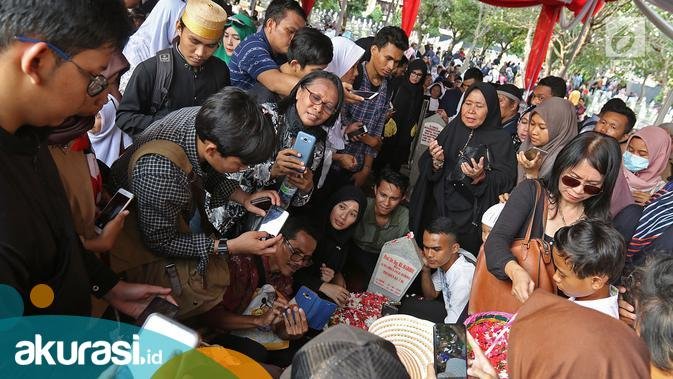 Akurasi.id, Bandung – Warga terus mengabadikan momen melalui ponselnya di makam Emmeril Kahn Mumtadz alias Eril di Cimaung, Kabupaten Bandung. Bahkan tak sedikit warga berswafoto di depan foto almarhum.