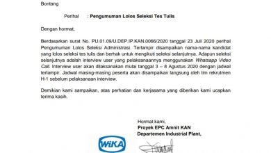 Pengumuman Lolos Seleksi Tes Tulis PT Wjaya Karya “WIKA”